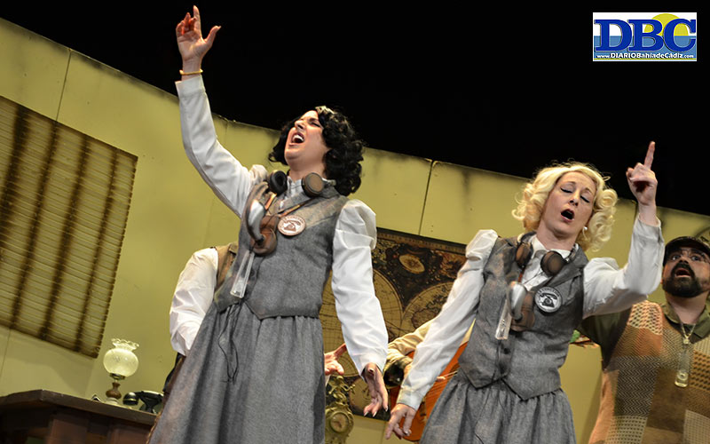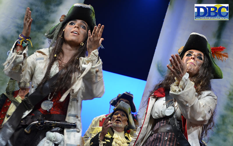 Las 20.08 horas. Va telón. Al agua, patos. Marejada. Coro a la deriva, desde que abren la boca. “No es que fuera un motín, fue una revolución, y cruzando ya sin rumbo este mundo, somos libres… a estribor, la mayor, a la Taza de Plata”. Saluda, seriote, este navío bucanero local, ‘Al garete’, con José Carlos Armario Hita asumiendo la letra, y Manuel Jesús Picado Sánchez y Alberto Pulido Morejón, la música. Un primer tango de re-presentación, con un repasito a quienes se han embarcado: disidentes sin elección, obreros, mujeres, autónomos que se ahogan, maestros, sanitarios, abuelos, licenciados sin futuro…, “es mi pueblo buscando fuerzas pa navegar, y si rabias igual que yo, vuélvete pirata y enrólate en nuestra rebelión”. A cuarenta voces. Defensa del habla andaluza, de su identidad, en el siguiente…, “la lengua que se desprecia, por toda la gente seria… que mi acento es la bandera de una nación, aletargada por la tradición, dentro de un reino que la humilló”. Con mención al pregonero, el Manu Sánchez, de propina. ¿Cuplés? ¿Casi-algo? Mi no entender. “Como no quererte, Cádi si por verte, navego al garete, me cachi en la mar”. Resuena ‘Los piratas’ del Ares al inicio del popu, y ya está Juan salivando… pero la cruda realidad para tus oídos regresa pronto…, “ay, mira tú, Tacita, ¿cuándo te hiciste tan bonita?, cómo eres tú tan bonita, cómo eres tú tan bonita… hay que vivir con calma… Cádiz es el camino, dónde hay que volver, donde hay que beber… y aunque vamos al garete, y las heridas escuecen, tú me das la fuerza para ser feliz, que robé en tu muralla un alma canalla, para resistir, confío en tiiiii”. ¿Casi-algo? Ya, ya se entiende. Naufragio.