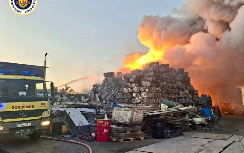 En la tarde de este miércoles se ha declarado en Jerez un incendio de cierta complejidad en la chatarrería del Puente del Duque, en la zona del polígono industrial El Portal. El fuego afecta principalmente a material acumulado en el exterior y a neumáticos, lo que ha provocado una densa columna de humo visible desde distintos puntos de la ciudad.