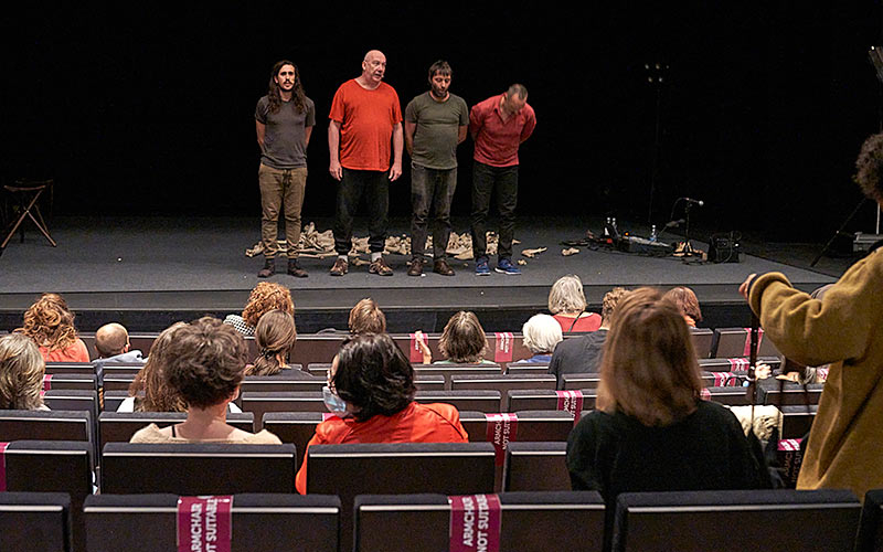 Y los huesos hablaron. Sociedad Doctor Alonso. Dirección y dramaturgia: Sofía Asencio y Aurora Cano. Intérpretes Nilo Gallego, Hipólito Patón, Ramón Giró, Lluc Baños y Sofía Asencio. Colaboración especial René Pacheco (Asociación para la Recuperación de la Memoria Histórica). Espacio escénico: Lluc Baños. Espacio sonoro: Nilo Gallego y Ernesto Anaya.