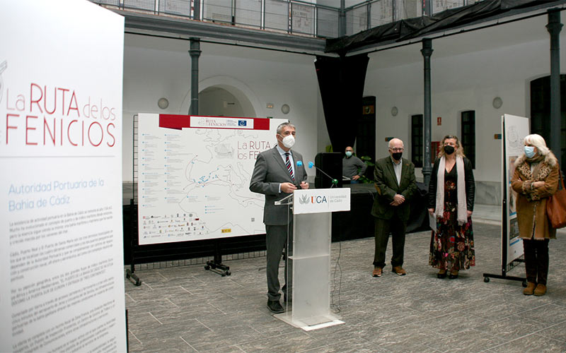 El patio del edificio Constitución 1812 en el campus de Cádiz (el antiguo aulario La Bomba) acoge hasta el 17 de febrero la exposición ‘La Ruta de los Fenicios en España. Itinerario cultural del Consejo Europa’, una iniciativa del Vicerrectorado de Cultura de la Universidad de Cádiz y la Asociación Española Ruta de los Fenicios, con el apoyo económico del Plan Propio de Investigación y Transferencia de la UCA.