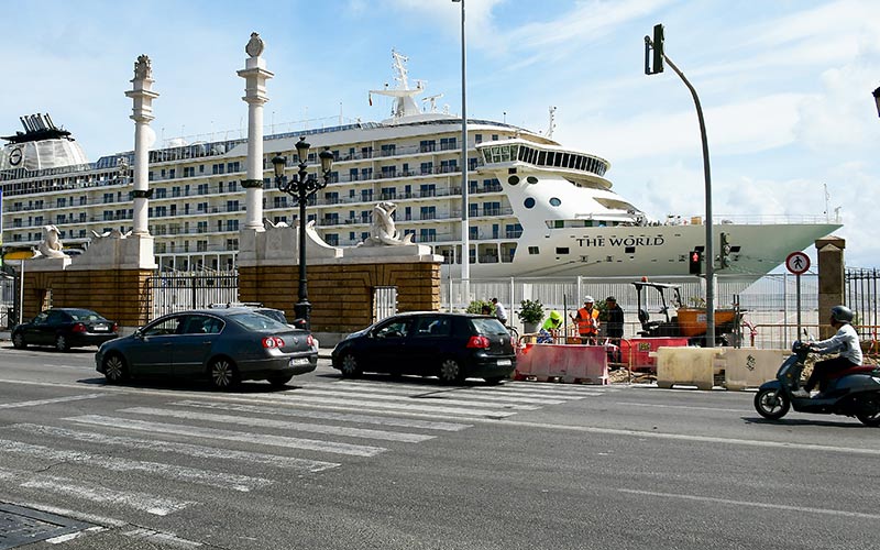 Cádiz se ha convertido de forma excepcional en puerto de embarque del crucero de lujo The World, que tras pasar varias semanas en el astillero de Navantia Cádiz, atracó en el muelle Ciudad el pasado sábado, de donde ha partido este martes con destino a Ferrol. En la ciudad han embarcado 119 pasajeros.