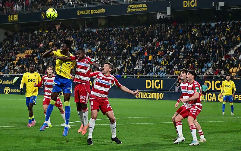 En la jugada siguiente, un precioso pase en largo de Ontiveros lo aprovechó Antoñito para lanzar al poste desde la frontal. Y desde ahí, tampoco es que el equipo local se propusiera hacerse con la dirección del encuentro para acogotar a su rival. El Granada seguía masticando la pelota ante un Cádiz cuya mejor virtud este año es la de ser capaz de meter diez jugadores al pegotón dentro del área propia y convencer al resto del mundo de que así se defiende bien.