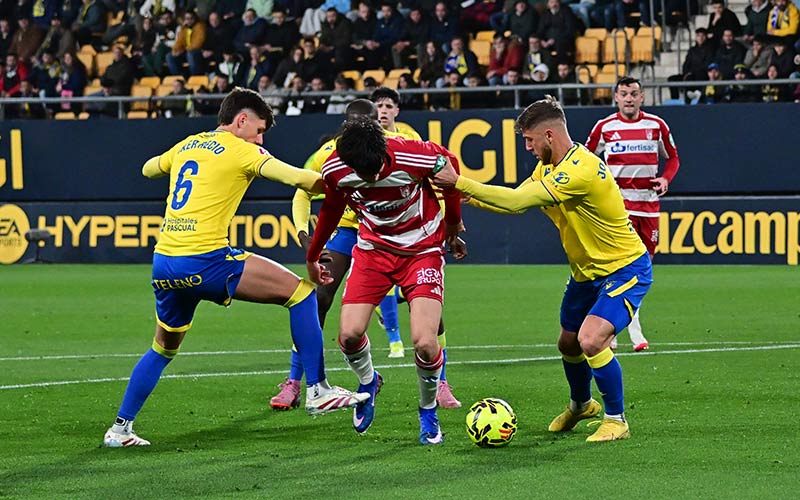 CRÓNICA JORNADA 23. El Cádiz post Tabatadze (lesionado para lo que resta de temporada) estrena una nueva crisis con la derrota en el Nuevo Mirandilla ante el Granada, que pelea por huir de la zona baja, en un derbi andaluz de alto riesgo extraño, evidenciándose que el equipo este año no es tal, sino que es una colección de jugadores que actúan a su bola y que fallan estrepitosamente tanto en defensa como en ataque. Los gaditanos, pese a estrellar cuatro veces el balón en los postes, nunca dieron realmente la sensación de que podían puntuar. No en vano, los visitantes también chutaron varias veces a la madera.