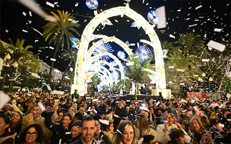 En la capital gaditana, donde se ha lanzado la campaña ‘Una Navidad para Cádiz’ con más de un centenar de actividades y acciones hasta la cabalgata de Reyes, repartidos por el casco histórico y barrios de extramuros, el acto del encendido de las luces (retransmitido en directo por Onda Cádiz) se ha centralizado en una abarrotada plaza de San Juan de Dios.