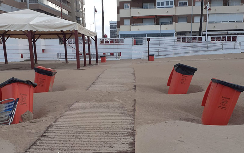 “Ahora nos encontramos que llegan los primeros temporales y es imposible realizar la recogida del material (torres de vigilancia, carpas, pailas, carteles, papeleras, etc.) con los efectivos actuales, por lo que es previsible que aparezcan los primeros destrozos dado el material que queda en la arena sin desmontar”, se alerta.