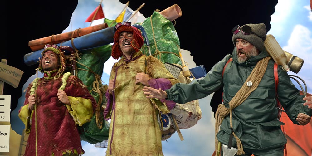 ¡¡Anarkía, y karnavá!!, vocea el gallinero mientras el Gago, bien abrigao, se sube el Everest. “Si no están preparao, que no vengan… por no poner restricciones, mira cómo está to esto, masificao”. Ya está contextualizado ‘¡Qué no vengan!’, el cuarteto number one, con letra de Miguel Ángel Moreno y dirección de Ángel Gago. Ahí se ha subido el gaditano, en gargajillos, “lo mejor para andar por las rocas”, y con camiseta enguatá. Conformando la expedición junto a un ricachón y un alpinista experto, y los dos sherpas, haciendo negocio en esa parodia inteligente y mordaz, que a la vez, por si no lo has pillado, trata de ser una metáfora fría y en las alturas de este concurso multitudinario al que se apunta to dios, por cumplir un sueño… Ese paralelismo, primo. Nepal Nepal Nepaaaal, es frío, naturaaaal, qué hago en Nepal, Neeeepaaaal. ¡¡Esa puerta!! No te venga arriba. En los cupleses hay toquesito al enano del cumple del Lamine, y a alguno más…, ·y al salir de la Iglesia ya no canta el Aceituna”; y a un amigo sevillano devoto de la Macarena…, “yo no sé qué le he dicho que se le ha cambiao la cara”. Bueeeeno. “El que no sepa ni entienda, que no venga, que no vengan”. El tema libre, marca de la casa, va hilándose a partir de cuartetas cantadas, insistiendo con su carga al Falla, a Vizcaíno, a Garamendi…, “el Himalaya es como el Falla, a más gente, más morralla… tú ibas de presidente, y se te fue de las manos… pero peor es Contreras… para triunfar hay que trabajar, explota explota explota que explo, eso se llama explotación…”. Y esta primera etapa de la escalada concluye con shentimiento…, “se rompió el Everest de tanto usarlo, de tanto abrir los brazos sin medida… por ambicioso, por solo ver en él fama y dinero, las cosas sin cuidarla duran poco… te devoramos vivo por completo… jamás pensamos que esto acabaría… y al cerrar nuestros ojos pensaremos, se rompió el carnaval por no cuidarlo”. Cuarteto-cuarteto. Juan, no hay más.