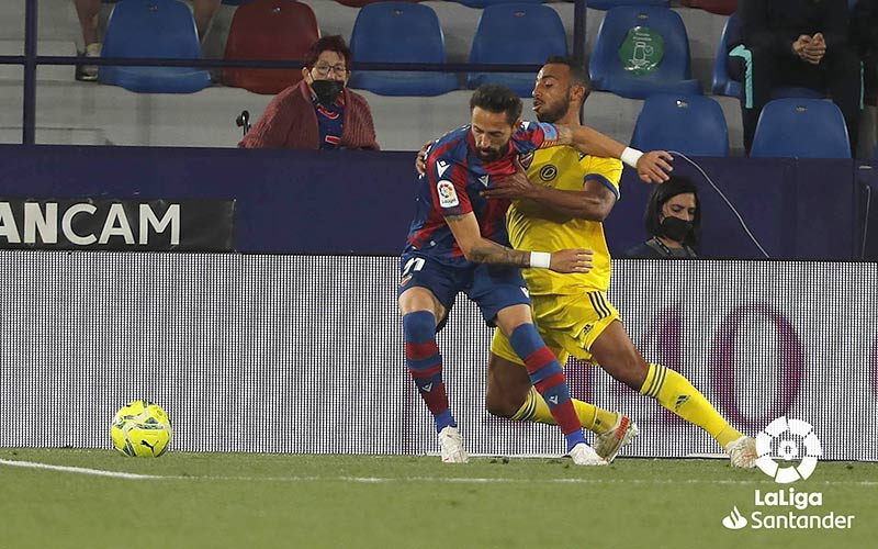 Unos minutos antes, el de Vallecas también lo intentaba desde el centro del campo al ver al portero adelantado. El Levante, con el resultado en contra, no terminaba de encontrarle las cosquillas a los gaditanos, cómodos, salvo en el descuento, cuando David Gil se marcaba un buen despeje ante un tiro de Bardhi en el interior del área.