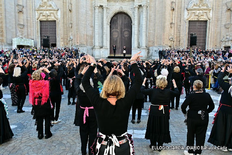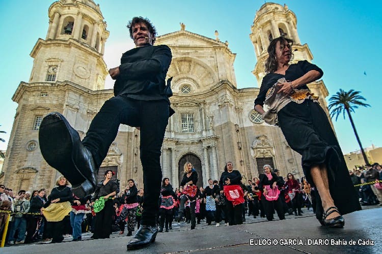 La ciudad de Cádiz ha celebrado el 15 aniversario de la declaración del flamenco como Patrimonio Cultural Inmaterial de la Humanidad por la Unesco (el 16 de noviembre de 2010), una semana más tarde de lo previsto, por las lluvias, con un flashmob en la plaza de la Catedral comandado por los hermanos Pilar y Juan Ogalla. Los bailaores han liderado una coreografía en la que se han involucrado personas de todas las edades, basada en unos tangos interpretados por el cantaor gaditano Manuel Gago.