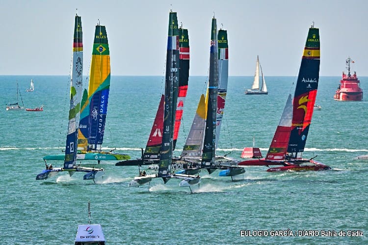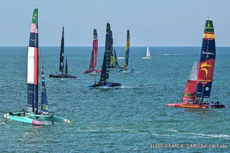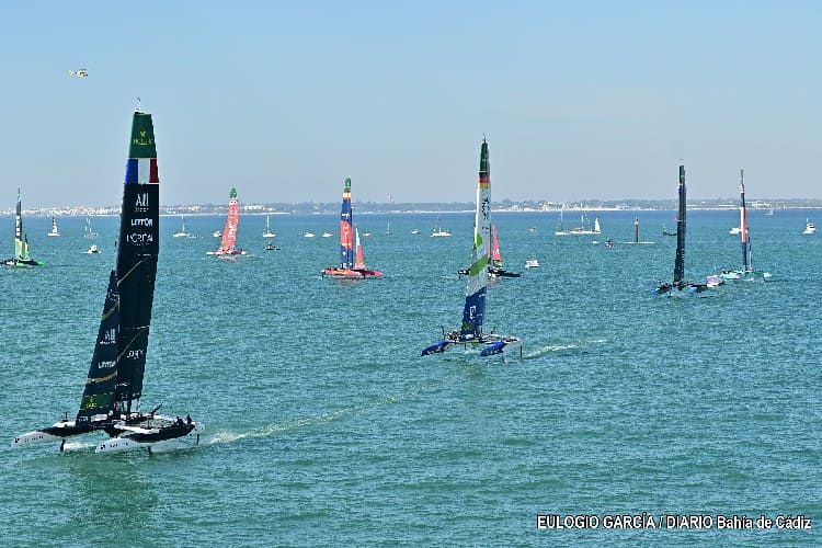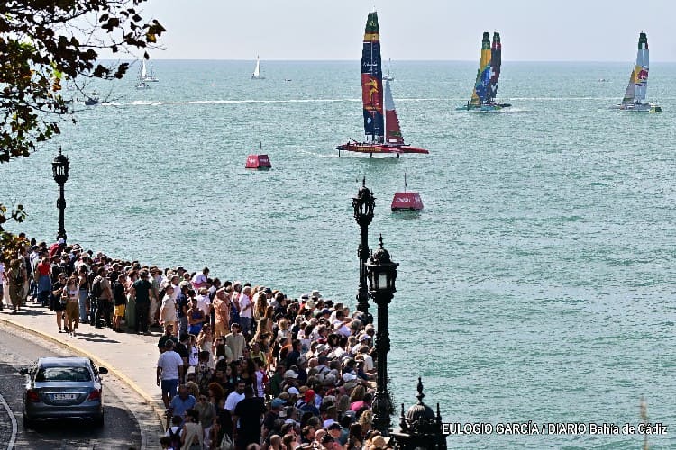 El espectáculo de catamaranes voladores de SailGP volvió a Cádiz por cuarto año en su quinto circuito mundial. Revivimos estampas del ambiente en el balcón de la Alameda y las últimas carreras de la jornada decisiva del domingo, a través de las FOTOS de EULOGIO GARCÍA.