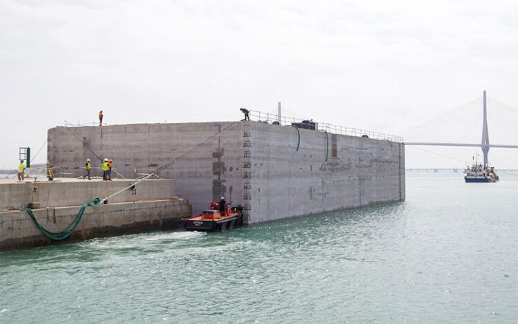 Según el relato desde la Autoridad Portuaria de la Bahía de Cádiz en la nota remitida a DIARIO Bahía de Cádiz, este cajón fue remolcado flotando, desde el amarre en el inicio del muelle de La Galeona hasta su situación definitiva, donde ha sido sumergido mediante el relleno de su interior con agua. Durante la maniobra final el bloque ha sido gobernado mediante potentes cabrestantes consiguiendo una precisión centimétrica en un elemento de estas enormes dimensiones y que pesa más de 15.000 toneladas.