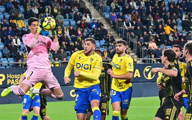 CRÓNICA JORNADA 29. Con el cadismo harto por lo que se ve en el campo (o no se ve) desde hace mucho tiempo y aún más por el humo no deportivo del club, empezando por el inoportuno rebautizo comercial del nombre del estadio en plena crisis de juego y resultados, en la fresquita noche del viernes este Cádiz en caída libre, con Gaizka Garitano a un paso del Inem, recibía en el Nuevo Mirandilla al colista, al Real Zaragoza estrenando técnico: David Navarro.