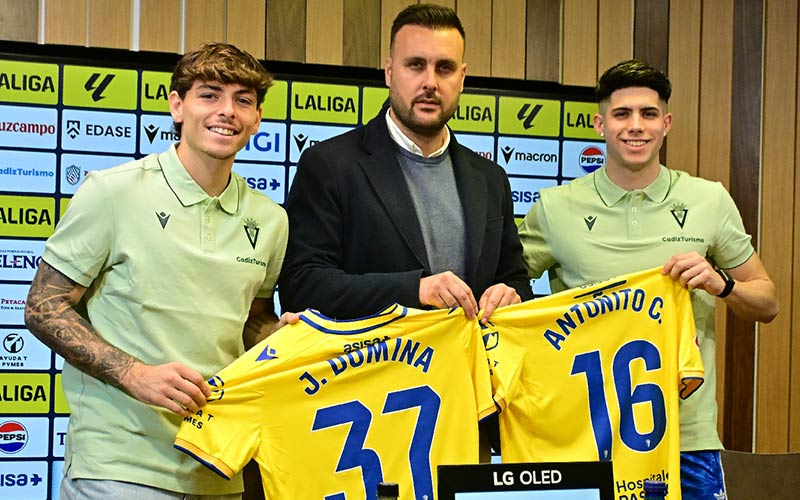 Ya en la sala de prensa del estadio municipal, Juan Cala, ahora coordinador de la dirección deportiva del Cádiz CF, acompañó a Domina y Cordero (de 20 y 19 años, respectivamente) en su primera rueda de prensa como jugadores amarillos.