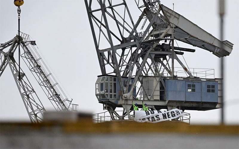 Desde entonces han celebrado asambleas (incluso desde lo alto de la grúa vigilada intensamente por la seguridad privada de Navantia, con los compañeros abajo que están presionando también negándose a realizar horas extra), han recibido apoyos de diferentes puntos del Estado o la visita frustrada de la eurodiputada de Podemos Irene Montero.