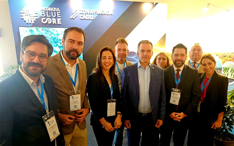 La representación del Consorcio gaditano (con stand en la zona de exposiciones) está aprovechando el encuentro para estrechar vínculos con otras zonas francas y distintas entidades y empresas tanto españolas como latinoamericanas, con las que intercambiará experiencias y conocer las acciones que se están desarrollando en torno a las zonas francas, la innovación y la economía azul.
