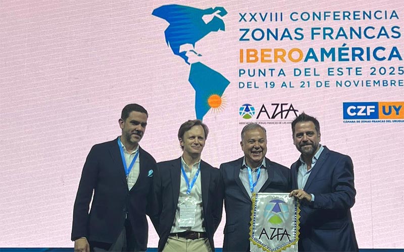 Él mismo, que ha sido ratificado en asamblea como miembro de la directiva de la Asociación de Zonas Francas de las Américas (AZFA), ha recibido el traspaso de sede de la mano de Carlos Wong, vicepresidente de la AZFA; Enrique Buero, presidente de la Cámara de Zonas Francas; y Julio Rodríguez, director ejecutivo de la AZFA, entidad organizadora del evento, en un acto que ha dado el pistoletazo de salida a la candidatura española, que coge el testigo de la uruguaya Punta del Este, donde este viernes finaliza la XXVIII Conferencia.