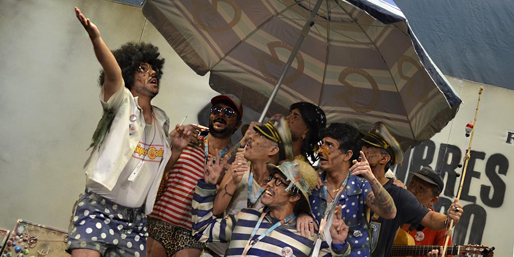 “Que yo creo que el maremoto está llegando poco a poco… señores, ha dicho Sonsoles que ya ha escampao”, jajaja. “Y como la Caleta es nuestra, venimos a reivindicar, que no tiren más cenizas que el puente Canal parece la ciudad del cementerio”. Saluda fresquita fresquita ‘Los hombres de Paco’, la chirigota de los Pibes, a la sombra de Paco Alba, of course. Muuu bueno el primer apunte…, “la independencia va a llegarle a Catalunya antes que a ti… joven, escucha el consejo, afíliate a un partido… sé inteligente y deja esa obsesión por ser alguien honrao”. Porque eso de estudiar tres carreras para acabar en el Burguerking… se masca la resignación generacional, Juan. “Qué sería de los chivatos, si no existieran los sindicatos… que ladra mucho y no hace ná… falso, eres tan falso, que del fracaso te vas lucrando…”, le canta la segunda letrilla reglamentaria al sindicalista-perro más cercano a los jefes que a los que dice representar, al que le desean que se atragante con una gamba, “y que to el mundo ese día dijera, se ha ido el Judas de la clase obrera”. Empalme mañanero soñando con la extinción de la fachosfera; y ligando con una pureta desmontable, “buscando el punto G me pasé seis horas y lo había dejao en el cuartobaño”, jejeje. No están malotes los cuplés, no. “Ligar, ligo poco, pero me toco… po yo tengo un prime como la torre de preferencia… ¡¡Bruno, babeta!!, ven pa acá, te voy a enseñar a mariscar, es como especular, qué cobazo nos va a dar, Cádi estaba lleno mierda y contigo está iguá… que espantamos los males, cantando carnavales, que es mi mayor tesoro, y no sé cuánto vale… que eres Cádiz mi pasión”. Popurrinaso con su pocavergüen y gaditanismo, chi-qui-tín.