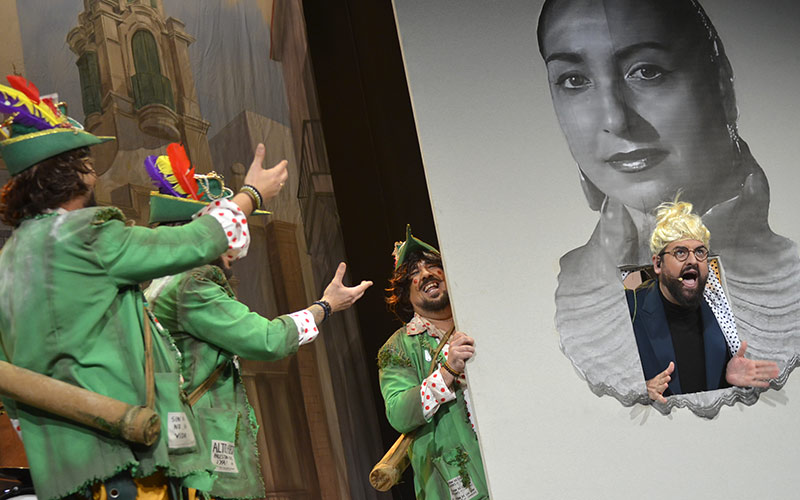 “Yo me niego que a mí mi pueblo me lo cambien por dinero, y que en mi barrio sólo vivan extranjeros… que yo no robo, yo recupero, y lo devuelvo a mi pueblo por febrero…”. Llegan ‘Los Robin’ del Barrio Santa María. El silencio ante el ¡Iván Alejo!, rebueno, jejeje. El primer pasodoble termina pancartero, pidiendo la absolución para los detenidos durante la última huelga del metal…, “de nuevo Cádiz oliendo a humo, vuelve a las barricadas… hoy un jubilao levanta el puño, defendiendo el trabajo que es de su hijo… aunque nos tachen de flojo y chabacano, nadie defiende el trabajo como lo hace un gaditano”. Y el segundo, rendido a chirigoteros en los que dice beber este grupo…, “desde mu chico yo fui robando, a esos maestros que yo quiero… cómo no voy a robaros vuestro arte, si sois quienes hicisteis grande la chirigota de Cádi”. Enorme. Aunque el viernes tienen pádel, Juan. Y en los cuplés siguen robando a otros, a los Guatifó la primera tandita con golpetazo a la geógrafa de la Sonsoles (Ónega), y “con tantos días de lluvia, hasta el cuplé me ha salío en galego”. Y en la siguiente, rebañan coletillas entre chirigotas del presente concurso y el Falla lo disfruta el triple. Cádiz, ve pensando en poner una alarma. “No se habla de Bruno, no no no, no ni ná…”, ya entra ese popu localista total, con cameo del Manu Sánchez como la campanilla de La Perla…, “por más que quieran quitarnos y por mucho que nos den coba, hay cosas que son tan nuestras que no se roban… si nuestras abuelas echaron a la droga, ¿nos vais a echar vosotros ahora?… me quedo en Santa María, que no les hablo de un barrio, les hablo de mi vida”. El chimpón es como delicioso y sustancioso, Juan. Orgullo en vena del 11.006. Y de verde, que son residentes.