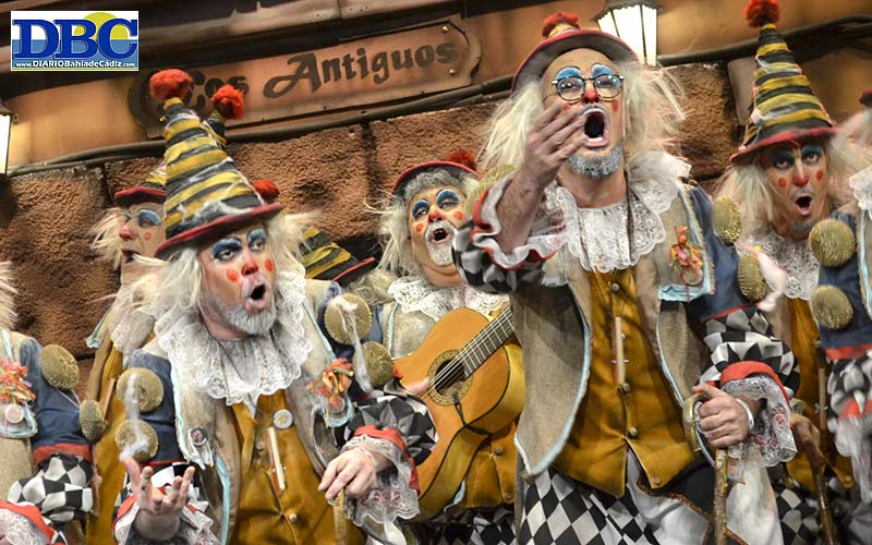 Anticuaos en el cante, en las formas, en las maneras. En la peña como refugio del presente espera la chirigota de antiayer ‘Los antiguos’, con la autoría de Carlitos Pérez e Iván Romero. “No me digas viejo, que viejos son los muebles… no me llames antiguo, porque yo ya no voy a cambiar”. Arrejuntaos, a por el pasodoble pum pum, clásico no, lo siguiente. Un pasodoble anclado en el siglo XX, “sonando a carnavá”, pa “decirle a mi Tacita, te quiero te quiero”. Con mini-parodia entre coplas: “al pasodoble le falta fuerza… es que es un pasodoble, no una casera”, jajajaja. El nieto ya no viene a ver a los abuelos, en medio de una separtación…, “seguro que viene a verme cuando me muera, me muera”. Telita, Juan. Te corta to el rollo. “Quien se quiera reír, que vaya a ver a los Morancos. Yo soy chirigotero, no payaso”. ¿Emm? En la tanda de cuplés, negro y polla, indisolubles en el primero, vaya; narcolancha y mojarrita, pero sin papel. Ayyy. “Esto no es el estribillo, es el testamento que yo he dejao”. Oliendo a naftalina el popu sencillito, cortito, salpicado de Sintrom y un cartuchito de pamplinas domésticas varias…, “una vieja y un viejo van pa Albacete, y a mitad del camino… se mueren los dos”. “Porque gaditano aquí he nacío, y me voy a morir chirigotero”, canturrean mientras se vuelven a la peña y el Iván les cierra las puertas. Es lo que buscan y lo encuentran: chirigota de Cadi Cádi básica sin aditivos, conservantes ni colorantes. Juan también aplaude con las orejas.
