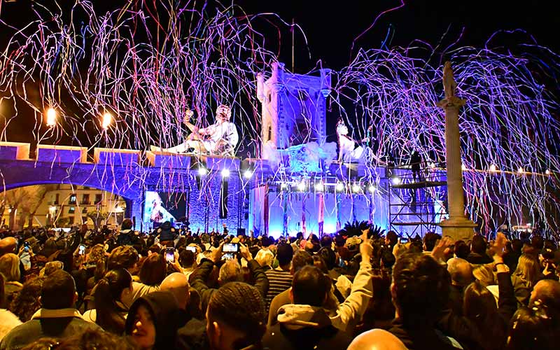 Sobre las ocho de la tarde y durante algo más de una hora, el entorno de las Puertas de Tierra, bajo la atenta mirada de las esculturas efímeras del dios Baco y de la diosa Salacia, se ha convertido en un “escenario monumental”.