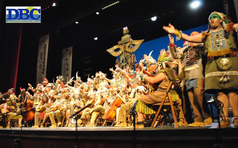 Las 20.05 horas. Arriba ese telón. Qué vienen los indios, Burlancaster… “somos la gran resistencia, el pueblo más insumiso y alegre, el clan que está contra el sistema, somos la sublevación… vente conmigo a mi poblado, yo te traigo la alegría y otra forma de pensar, yo te traigo la dignidad, la humanidad, la libertad”. Promete subidón de autoestima y rebeldía el coro ‘Gran Reserva’. La segunda incursión de García Argüez en la modalidad sigue en la línea de aquellos ‘Tiempos modernos’, con menos grasa y más pluma. Un western que abofetea al mundo-cárcel-de-hormigón-y-estrés en el que estamos encadenados y conecta con la naturaleza, sabia. Miguel Ángel García Argüez, el Chapa, firma música, y letra junto a Antonio Procopio. Un metatango para saludar, a modo de carta de presentación… “mi tango no es caletero, no es nuevo ni viejo pero es el mío… que incluso puede ser tan salvaje como tú quieras, pa que el corazón te hierva…”. “Si quieres tú ser guerrero, en esta reserva manda mi hermana…”, aclara el segundo, alegato antimachista. Quejosos los cupleses con las leyes racistas… “y ni te quiero contar cómo te coja con una china”; y a quienes se escandalizaron con el disfraz del pasado año de la concejala de Fiestas, de diosa Gades, con cosqui diresto al Fernando Santiago… que esto es Cádi, que se note, que mejor que hagamo el indio a que hagamo el carajote. Y espérate que llega el popurrí, creciendo y embaucando cuarteta tras cuarteta, recurriendo al buen rollo antisistema, a instrumentos de viento, y al contraponer ideas y sensaciones, marca de la casa…. “la ideología, si a ti te ciega, se convierte en porquería…”; “y que el agua se lleve… a todos los fachas que van a salir…”; “guárdate ya esa superioridad de animal civilizado… quién es el esclavo, quién es el salvaje…. que yo en tu reserva, nunca me voy a encerrar, no me vengas a buscar, déjame vivir en paz…”; “mañana de aguacero, y tú y yo por la Caleta… que nos dejen escoger estos pequeños tesoros, que la vida es como un tren con sitio para todos…”; “y mientras ellos nos hacen cadenas, la vida destierran, destruyen la tierra, nos hacen la guerra, nosotros vamos a hacer el amor…”. Estos indios son mis indios. El fiscal ha apuntado en su libreta catorce posibles delitos… Buena señal. ¡Jau!