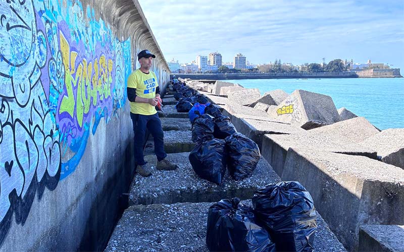 En esta última limpieza, este profesor en un instituto sevillano e influencer ambientalista (que lleva impulsando este tipo de iniciativas desde 2018 no solo en la capital gaditana, también en las provincias de Huelva y Sevilla) ha contado con la colaboración de una decena de voluntarios de Cádiz (varias chicas del grupo scout Cruz del Sur), El Puerto y Sevilla, y asegura haber recogido unos 420 kilos de restos en bolsas, listas para que las retiren desde el Consistorio.