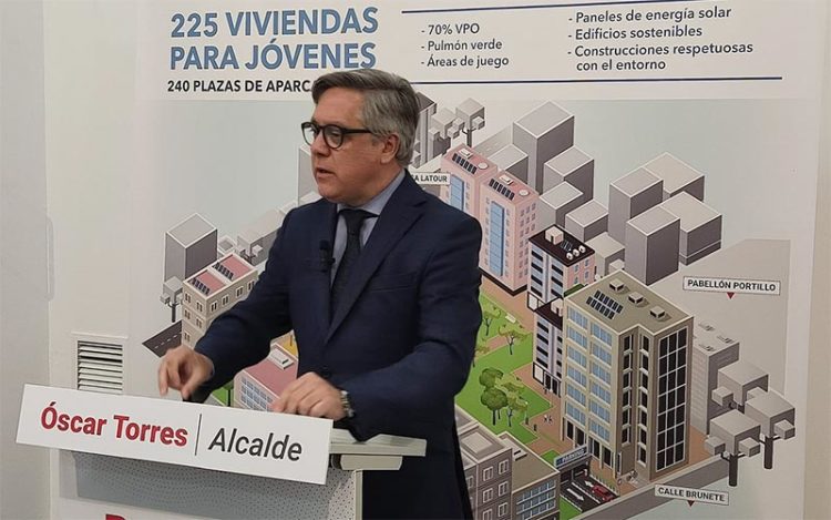 Así, el candidato a la Alcaldía de los socialistas, Óscar Torres, ha esbozado el proyecto de esta posible promoción municipal con 225 viviendas para jóvenes, con un 70% de VPO, y el complemento de 240 plazas de aparcamiento.