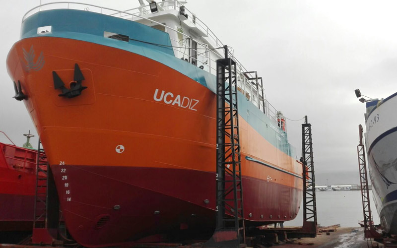 El UCADIZ, propiedad de la Universidad, con 25 metros de eslora y 7,5 manga, reforzará las infraestructuras científicas de la UCA y del CEI.Mar y se pondrá inmediatamente a disposición de la comunidad científica del Campus para avanzar en los trabajos de investigación en distintos ámbitos como la Oceanografía, la Arqueología Náutica y Subacuática, la gestión del agua y del mar, etc. Al mismo tiempo, constituirá un recurso de grandes prestaciones para la docencia de grados y másteres especializados en los estudios marinos y marítimos que se imparten en la actualidad en el mismo.