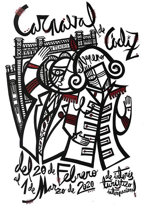Hasta 60 obras aspiraron hace un año a ser cartel del Carnaval de Cádiz 2019, y solo cuatro de estos trabajos pasaron a la fase de votación popular. El afiche bajo el lema ‘La pelucádiz’, del cordobés Javier Urraca, se hizo con el premio.