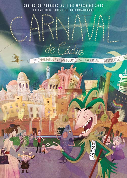 En total, han pasado a la ‘final’ siete carteles, los que llevan por lema: ‘Érase una vez en Cádiz’, ‘Un Carnaval de tod@s y para tod@s’, ‘Carnaval al sol de poniente’, ‘Fiesta en el viento’, ‘Momo & friends’, ‘Componiendo el Carnaval’ y ‘Carnestolendas’.