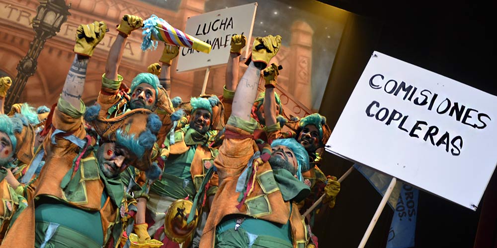 Las 20.30 horas. Y tras un minuto de silencio en memoria de José Antonio Flores ‘el ensaladilla’, y media hora más tarde de lo necesario, arriba telón. ¡A la lucha de febrero! El coro de Julio Pardo, hijo, a las barricadas… si papá levantara la cabeza. “Hoy se para este concurso, este año no habrá coplas en el Falla… y sin coplas no hay negocio, ni pa teles ni pa radios, ni políticos ni fotos, ni se venden los diarios… únete, a comisiones copleras”. Con potencia inconfundible esa presentación pancartera de ‘El sindicato’, peleando por los derechos de quienes están detrás de esta “fábrica del arte”, de esta “empresa gaditana”. Antonio Rivas y Antonio Pedro Serrano ‘el Canijo’ firman la letra, con la música de Julio Pardo Carrillo. Jugar con el Tron en tu equipo es trampa, árbitro. “Obrero, hoy mi tango es pa ti…”, sentencia la primera letra, agradeciendo la histórica lucha obrera por las papas y la industria de la Bahía. Y tango superlativo el siguiente, directo al Feijóo, su chulería, y compañía: “aunque usted se piense que los andaluces somos analfabetos…”, sabemos contar las corruptelas e incompetencia de los peperos…, “y se lave la puta boca si vuelve a hablar de mi Andalucía”. Si papá levantara la cabeza… El muñeco del Nazareno itinerante pensándose en montar la última cena en el Calachica, reza uno de los cupletillos, con estribillo más que resultón: “quiero que vuelva el Vera, quiero que vuelva el Tino, y que al sindicato nunca le falten los langostinos”. El metacarnaval desborda un popurrí señorial, con su cuarto y mitad de autocrítica, túyajabe, por parte de estos obreros sin patrón que producen coplas por febrero, con sus reivindicaciones, asambleas, nostalgia del pasado que no volverá, y un deseo apelando a la afición desvirtuada, “lograr que vuelvan los autores que se aburrieron… aficionado, firma este trato con el sindicato”. “Que si no estamos unidos se nos muere el carnaval”. Coro redondo, aunque la temática siga dándole vueltas a la rotonda. Hay vida más allá del carnavá. Pon el intermitente, Juan.