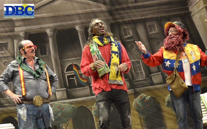 ¿El vapor? Yo también quiero. Aparece con toalla a la cintura la chirigota de la localidad almeriense de Roquetas de Mar ‘Los ahumaos’. Con el tuyamentiende pixelao, dentro del calzoncillo. “Vente pa la sauna, y relájate, y libérate, que este año por carnavales, te vas a jartá de sudá… vente pa la sauna, que te voy a dar calor”: el extracto de esa presentación humeante. José Manuel Gómez-Vizcaíno, Juan Bautista Herranz y Eduardo Mayone comparten la letra, mientras Juan Antonio Osorio y Mariano Ruiz hacen la música. “Me pueden hundir desde el foso, ya me suena hasta gracioso”, anota ese primer pasodoble tesquieroCádi aunque vengan con el autobús desde la otra esquina del metaverso andalú, dejando a la parienta de parto. Y orgullosos del pregonero ceceante. Primera letrilla para el saco del Manu Sánchez. Un cuplé conecta un chaval pajero que no sale de su cuarto dándole al asunto, con el secuestro de Maduro. El otro tiene los huevos presos. Todo cuadra. Será eso, Juan. “Vamos a ba-jar-nos los humos”. El popu es un baño finlandés… baño de realidad, más bien. “Se nos rompió el tablón de tanto usarlo…”.