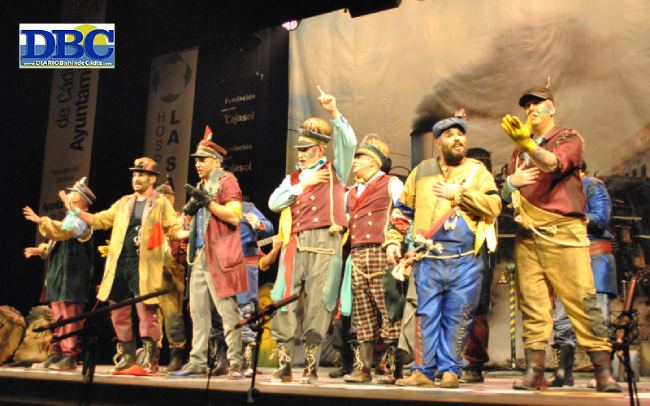 En el dique aparece la comparsa de los Majaras de El Puerto, ‘La Santa María’, construyendo una metáfora, o cerca… “no lo olvides que los barcos de mi Puerto, todavía saben navegar”. Entre miradas, ese primer pasodoble bimbo, que acaba intercambiando las de esa abuela y ese abuelo. “Treinta años tiene la nuestra o la de ellos”, arranca al segundo, felicitando con educación a Canalsú, y con retintín, quejosos con quienes deciden que las agrupaciones de la provincia no salen por la tele de los andaluces…. “manipular la historia, es lo que estáis haciendo… la historia de carnaval no es tu programa, es formar el tangai en estas tablas”. Interesante ese punto de vista, quillo. El Modesto y el Casal, en aguatapá. Un revolcón con un mushasho, que llega hasta hallowin, en los cupleses… Dime pa qué quiero maaaaaás. Francisco Javier Sevilla Pecci es el autor de letra, y Vicente Esquerdo Oliva, de la música. Intenso popurrí, asomaíto al foso… “los carnavaleros nacen donde les da la gana… esta es mi Santa María, la reina del maaaaaar”. Reivindicando el made in Puerto. Fiscal, tú que dise… él es más de made in Chechenia.
