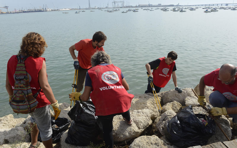 La concejalía de Medio Ambiente del Ayuntamiento de Cádiz, en colaboración con el grupo de voluntarios GEA y en el contexto de una jornada ecológica global, llevó a cabo el domingo día 21 una jornada de limpieza de las escolleras del borde marítimo paralelo a la avenida de la Bahía. En total, se retiraron 380 kilos de plástico y cinco vallas oxidadas.