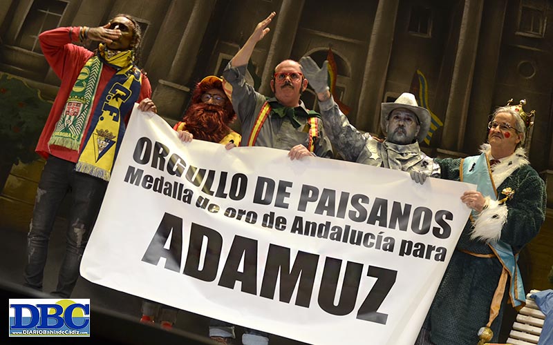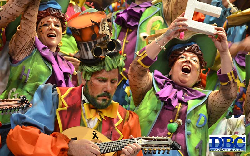 Con la bandera palestina en el balcón contrario y ahora sí, planchaíta, ya canturrea desde El Puerto ‘La palabra de Cádiz’, escrita por Joaquín Fernández Daza. Predicando con sencillez el habla de Cádiz…, “lo más puro de mi tierra”. ¿Homenajearán hoy a don Pedro Payán? No sé no sé. ¿Coloretes de purpurina? Con pullita al componente de una agrupación de Almería que se vino a pisar el Falla mientras su parienta estaba en el paritorio, y presumió de ello, viene la primera letra…, “es increíble que un padre se ausente cuando su mujer da a luz… porque un padre debe serlo desde ese día, toda la vida… nos queda tanto que enterrar de esta sociedad machista… las que nunca fallan son las mujeres”. El segundo, ojanoso con el OndaCádi…, “brindo por tus veinte años dentro de este manicomio… la tele municipal de los gaditanos, por hacer que Cádiz y su palabra rompan los muros del Falla, y nuestras coplas lleguen a miles de aficionados”. Vaya, po nosotros cumplimos veintiún concursos en el foso, Juan, y aquí nadie nos ha cantado ni una rumbita siesa. Enfádate. Los cuplés son… dos. Tampoco vamos a hacerles un análisis sintáctico ni una autopsia ni ná, ome. Yo no sé cómo lo haces que me dejas sin palabras. Digna defensa orgullosa del gaditanismo desde el otro lado de la Bahía y de ese pupurrí resultón…, “y con la zeta concluye tu nombre, y con la zeta también mi comparsa”. ¿Palabras con zeta, Juan?: zozobra.