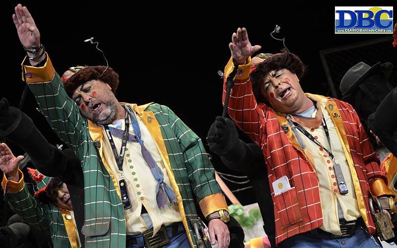 “Descofíao, yo sé que soy desconfíao, como está la vida, no me fío de ná…”. Con soniquete y ensombrecidos ya saluda, ¿seguro?, ‘Piensa mal y acertarás (Los desconfiaos)’, la chiri de los Villegas. Para empezar, más que defensa de la sanidad pública, una diatriba gorda frente al negocio de la privada…, “aquí las sábanas son limpias, y más limpias las conciencias… yo no tengo un peaso coche, ni catorce guardaespaldas, a mí me cuidan de noche los angelitos de la guarda… y que le den porculo al cáncer capitalista”. Amén. Y coba XXL con relates de otras agrupaciones…, “Cádi Cádi es patrimonio de todos los gaditanos… te han echao tantos piropos desde aquí los compañeros, que prestados los cogí para decir, mi Cai cuánto te quiero”. ¿Seguro? Incinerando al jefe, esquivando rimas soeces, gaviotas echando cohones, Martínez Ares tristón a la altura de Álex Úbago, cunnilingus con la boca llena, y la hermana, ayyy esa ventana… Por ahí resbala la tandita de seis cupletinas, seis, alguna ya tal. Cómo pa no ser desconfiao. “Que todo el mundo en el fondo, aunque sea mu al fondo, somos un poquito desconfiaos… la vida me hizo ser desconfiaoooo”, ese chimpón del popu te entra mejor que un vaso de moscatel chiclanero. Pero cortita la cosa, más allá del buenrrollismo que desprende el grupo, y aquello de “las apariencias engañan, sino fíjate en Felipe González”. Pum. Pa ponerlo en un rinconcito cortando queso. Juan ahí, muere. Con sus picos, yeyé.