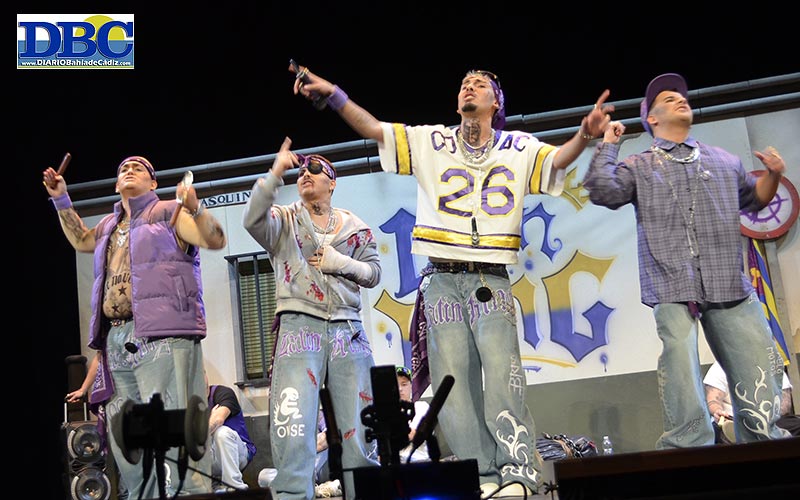 A la calle Pasquín llega un nuevo vecino, un pijo, Cayetano de Sevilla, y se topa con unos malos malotes…, “pero ustede qué sois ¿unos enganchaos?, ni que fuera policía local”, pum. Un aspirante a cantante, uno que trapichea, y un mullido que se lleva to las puñalás, “ansiedad, ansiedad”. Tratando de integrar al recién llegado en la banda, “o conmigo o contra mí, como la chirigota del Manolín”. Por ahí anda con descaro inconsciente de juventud y tiritos a pelú el cuarteto excantera ‘Los Latin King (de la calle Paskín)’, con Manu Peinado detrás de la autoría. “Se vienen cosistas, mi gente… Te falta calle, brooo”, las coletillas marca de la casa para esta temporada. Llaman flojo a Martínez Ares, en un cuplé, y homenaje, túyajabe, al pregonero Manu Sánchez designado por un gobierno pepero, “yo creo que te han elegido porque te estás pareciendo a Franco”, pummm. “No es que sea chovinista, es que me pita la pulsera”. Lanzamiento al patioputaca de pan pan pan para arrancar el tema libre, relatando cómo se perdieron en la vida y formaron esta banda to chunga… con saco gordo de carguita, maldad y bastinazos…, “si te dan una puñalá que sea de reír… en Cádiz los palos se dan de dos en dos… que me digan si es delito quererte a ti mi Cádi, como te quiero”. Haciendo amigos. Ganando tablas. ¡¡Dame más gasolinaaaaa, Juan!!