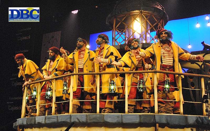 Y apagando la función, o todo lo contrario, y poniéndole la chapa, ese faro a oscuras arranca un ooooohhh del teatro, entre la bruma, y de nuevo en lo alto el Ángel Subiela, y el Carli, con ‘Los luceros’, con letra de Miguel Ángel García Argüez y musiquiqui de José Manuel Aranda y Manuel Sánchez Alba, el Noly, Pasión en modo on,.. “Hágase la luz de nuevo… Cádiz es como un bichito dando vueltas a una luz, ay luciérnaga de las negruras, mi candil del sur del sur… gaditano y andaluz que brilla a contra luz, desde febrero a febrero… el tintero negro de la noche se derrama, y el cielo es un pez al que le brillan las escamas, y hoy quince luceros se quieren colar por tu ventana… deja que te alumbre con la antorcha viva de mi voz, pa ver las luces y las sombras, pa que se aclaren tus reflejos, pa que se rompan tus espejos… yo te he dao todo lo que tengo, mi tiempo y mi juventud, pídeme mi sangre o lo que quieras, mi vida entera, pero hágase, pero hágase la luz…”. Y Endesa, feliz. Poesía que va iluminando esa presentación. Auto-ojanosa con la propia música del pasodoble, ese primera letra que acuna, para sentirla… “no es que la luna lunera tenga luz de plata, es que mi faro y tu luna se regalan una vieja serenata… suena a las olas que vienen y van, como el mecido de una bajamar, suena a poniente y a yodo y a sal, suena pa tu paladar… música clara, oscura, pura, de las mareas, y sin embargo tiene un latido recién nacido en las azoteas, suena a pasado, a presente… óyela, que retumbe el tresporcuatro y reviente este teatro con la música del cielo, pa que brillen los luceros”. Y saca el móvil y graba que viene el segundo, con voltereta final, marca de la casa… “mira qué hermosa es la tarde, mira cómo el cielo arde, graba este sol y esta luz inmortal, este azul poderoso de sal, graba mi playa y mi mar… graba y disfruta que no hay más playas como estas playas del sur del sur… ponte ahí que voy a sacarte un plano donde salgan tus dos manos, tu carita y tu sombrilla… ponte ahí, que también quiero que salgan bien claritos y a tu espalda, veinte muertos en la orilla, veinte muertos sin sus tumbas, pa que no olvides nunca de esta negra pesadilla”. Letrón de los que hacen sentirte mal, rodillaso en la conciencia. Que viene la ola. En los cupleses, con el coco comido por los carnavales… ya con la parienta “no hacemos preliminares, pa qué si no arrastra puntos”; y madriditis y títulos, el Sergio Ramos promete sacarse el graduado… Pero el lucero más grande y que tiene más luz, no es el de los faros que tienen los mares, que es el de mi mare, me cachi en los mares, que a mi me dio a luz. Fuaaaaá. Y ponte la rebequita, que entra el popurrí en vena, de esos para, después, leer y analizar… “Vivo en este faro solo, todo lo hago solo, pa arriba pa abajo yo solo, y pa hacer el amor, ni una triste sirena… pero mi faro chiquito da un resplandor muy bonito con una gracia exquisita y arte pa rabiar…; abre los ojos y mira a tu alrededor, verás la luz que nos da color aunque parezca que es invisible… la luz es un derecho y no es un privilegio, no me especules con la luz, el pueblo necesita luz…; cuidado que allí vienen nubes negras, pero no es la tormenta en ningún cielo, es la que a veces hay en tu interior… sal de ahí compañera, mi amigo sal de ahí, y aguanta el temporal que tras la tempestad, siempre vuelve el sol a relucir…; abre los ojos, mira la multitud, mira la gente, buena y corriente que nos regala luz… cuántos fareros hay a tu alrededor, mira de nuevo, mira sin miedo, mira su resplandor… son el faro de lo eterno, son las luces que dan vida, son los benditos luceros que iluminan nuestras vidaaaaaas”. ¡Que este mundo es de la genteeeeee! Ah, no eso es del coro del año pasao… La última cuarteta tiene una música que me suena, me suena, y me ilumina el rostro, El fiscal, me desenchufa. DIARIO Bahía de Cádiz