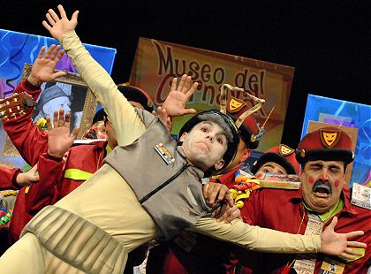 ¿Abrió el museo del carnavá? Aquí está su vigilante, Eliseo, “y cuando suena el tresporcuatro cobra vida este museo…”. Entró la chirigota chirigota ‘Noche en el museo’, con José Antonio Rodríguez Fierro, Moisés Serrano Bruzón y César Augusto Dos Santos Cañas firmando la letra. Y Manuel Sánchez Alba ‘el Noly’ y José Rodríguez Cruzado, como autores de la música. Un pasodoble piropillo enamorao casi más del propio chimpún chimpún… “taratachín taratachán, qué me gusta este compás… escucha este compás y así comprenderás lo que yo te quiero”. “Por qué, dime Cádiz, te olvidas sin querer de tus poetas buenos…”, se queja la otra letrilla desarrollada a partir de nombres de agrupaciones de Joaquín Quiñones, que pide que los reconocimientos no terminen llegando demasiado tarde. Manolo Manolo Manolo Manolo… “Manolo hizo la maleta y dijo, Conchi, te quiere ir ar caraho”, en el segundo cupletillo, jeje. Yo no tengo estribillo, y tú no tienes museo. Popurrit con guasa de Cádi Cádi para esa guardia nocturna en el futurible museo, o no… “aquí dentro mil historias quedarán, salpicadas siempre por tu bajamar… no hace falta que se cumpla tu deseo, porque Cádiz tú eres mi deseo”. Pedro y Pablo quieren llevarse a casa el muñeco de cera de El vapor, chaca chaca chaca… DIARIO Bahía de Cádiz