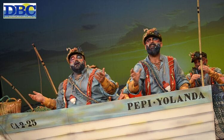 Rematando la faena fallera, una comparsita portuense fondeada en La Caleta con su caña y su barquilla, y sus barbas de fantasía…, “cuando aquí salimos a pescar, soltamos más que cogemos… y no hay rincón más bonito para quitarse las penas… ¡al agua!”. La letra de ‘Aquí me quito las penas’ la firma Raúl Villanueva, y la música Carlos Javier Noriega. “Sigue navegando, sin ti no queda mar por recorrer… aquí tienes mis manos pa ser los remos de tu corazón”, subraya en éxtasis el primer pasodoble piropillo a sus madres. Sentado se cansa uno menos, Juan, y no se vuelca el bote. Avanzamos con drama, un padre charloteando con un hijo entre barrotes…, “no puedo asumir la culpa de tu destino, yo no coloqué las piedras en tu camino, tú decidiste tomar el rumbo del sinvivir… me marcho… el niño de mis ojos se ha convertido en un maltratador”. Cuplés en aguatapá. No vea qué tandita, pa hacerles una ajogaílla. “Por si yo te echo la caña, yyy, tú muerdes el anzuelo”. El popu, con afinación submarina, le canta a la gusana canutera. La jornada de pesca acaba con canasto vacío y el alma llena…, “por un ratito, al menos he sido feliz… que la vida son dos lances”. Y el tercero está lloviendo, Juan. DIARIO Bahía de Cádiz