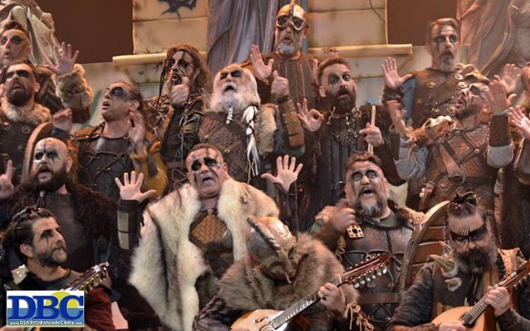 Va telón. No van de vikingos, ehh, que se ve que hay alguno en un palco to confundío. A por todas el coro libertario del Chapa, soñando con la rebelión de la juventud…, “hay una ciudad que se queda sin aliento, que vivió mejores tiempos, con pasado y sin presente, que se apaga lentamente, cada vez te queda menos gente y menos piel… ¡¡Cádiz necesita juventud!!”. ‘¡Qué barbaridad!’, muy presente. ¡Esto es lo que necesitan los coros, que se digan cosas!, vocea un forofo anónimo. Vaya: un idílico cumpleaños de una niña de siete años acaba de sopetón “entre los juegos y las risas”, con bombazo genocida…, “este infierno en Palestina es la realidad”. Ma cortao el cuerpo, Juan. El segundo tango se pregunta de dónde salen los fanáticos fariseos de Abogados Cristianos…, “pero de dónde coño han salido todos esos cristianos que hay por ahí… dónde estaban, quién les dio vela en esta democracia… y encima pierden to las denuncias, no van a ganar ni el juicio final… santurrones custodios del veneno y el odio contra la libertad… si luego entras en una iglesia y está vacía, y no va ni dios”. ¡Qué barbaridad, qué barbaridad! En los cupletillos: judo cagao, con cinturón marrón; y un pejiguera con recuerdo para el Daniel Sancho. Ejem. ¡Qué barbaridad, qué barbaridad! ¿Nestea de maracuyá? Odio eterno a la espesa neblina rojiza que envuelve el popurrinaso crítico y a la vez embaucador, con remate entre esperanzador e iluso…, “el tiempo entre las manos se nos va, se te va, se me va, el tiempo que no tiene marcha atrás, las cosas que estuvieron y hoy no están… no escuches a quien diga que estás hecho de cristal, y a galopar a galopar, si hay una esperanza sólo es tu generación… sólo está en tus manos el futuro de esta tierra, mi tierra… que vuelva el Cádiz salvaje, con alegría en sus calles, que la juventud nos devuelva la vida… que las calles hoy son nuestras”. El mensaje de este coro se debería grabar en piedra ostionera al entrar por Cortadura: ¡¡Cádiz necesita juventud!! La sensación ambiental, nada original, es que el García Argüez está más en su salsa escribiendo para el coro que para la comparsa. Juan, dame con el hacha. Pero flojito.
