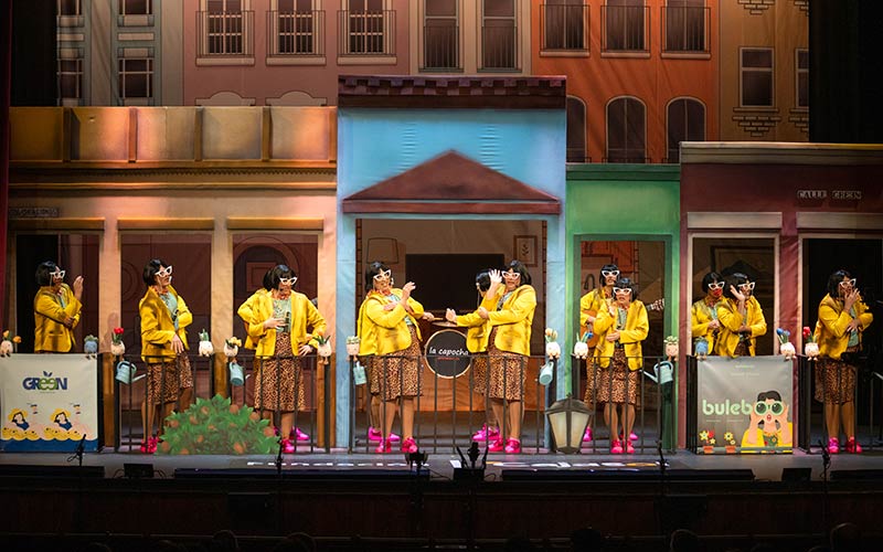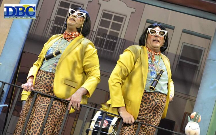 Chirigota abalconada, y travestida, para alcanzar la medianoche. Charis-cayetanas-malages asomadas a la vida, la vida de los demás. Con bailecitos y coreografías se va desarrollando ese holaquéhay, con final abrupto, e interés a devolver. Momento ‘Yo con esto no puedo’, chirigota sevillana de Mairena del Aljarafe. Constancio Pérez, Sergio Toro, Alejandro Morales y Manuel Orquin comparten la autoría. El Selu, nuestro Selu, se lleva una letrilla homenaje, aunque no se ha morido ni ná, con sarcasmo previsible desde Trebujena. Se piden ser sus herederos, aro. En el segundo pasodoble se quitan las gafas de pega que se ve que viene drama. Dicho y hecho. El Trump también va a invadir Cádi, jí, pa llevarse a la Petróleo. “Chari, por qué no te va al caraho”. Juan tiene que tender una lavadora de calzoncillos, y mira cómo está el tiempo. DIARIO Bahía de Cádiz