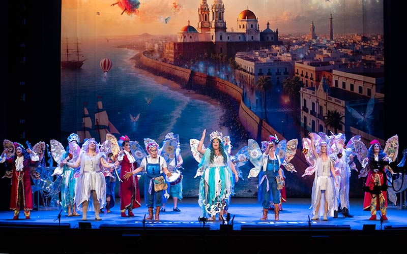 Qué peshá de gente, prima. Con el Falla todavía impactado con el accidente aéreo insospechado, sobrevuela ya el teatro ‘Con la primera risa’, comparsa local con letra, música y dirección de la agrupación. A quince manos, a quince voces. Se les ha quedado grabado eso de mantener el distanciamiento físico de tiempos del Covid. “Cuando nace un gaditano en los brazos de su mare, lo bautizan las mojarras, el levante y el poniente… y de su primera risa, nace un hada gaditana que hará realidad sus sueños”: la paranonia que se rescata de la presentación. Amor fraternal, para empezar: “que yo crecí con el mejor de los regalos, que es tenerte como hermanoooo”. Y una letrilla ojanosa con la Tamara Beardo, “siempre serás mi maestra”. Carapapa, agricultura, Pastrana, culo y coño. Une los puntos y te salen dos cuplés choníos. “Ay Cádi de mi alma, que tan sólo tu sonrisa a mí me hace renacer”. El pupurrí random-despropósito termina de confirmar los poderes mágicos de estas hadas. Está cayendo un chaparrón ahora, que no vea. Quieto ahí, Juan, que te mojas. DIARIO Bahía de Cádiz