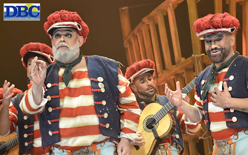 “Y sin que nunca me lo pidas, te doy mi pico por febrero… dale al pico Federico, dale al pico Serafín, que existen pobres y ricos con la mollera llena serrín… que los gaditanos son, pájaros y carpinteros”. Saluda, caja de herramientas en mano, ‘Los pájaros carpinteros’, carpinteros de ribera, rematando una barquilla para un tal Paco que por lo visto es de Conil. El Canijo fusionándose con Nene Cheza. Con alzheimer su madre-patria en el primer pasodoble, que va olvidándose “de su historia, su memoria y su dolor, del cabrón que le robó, cuarenta años de vida”. Y ahora, vota lo que vota. Y en primera persona, la siguiente letrilla emoshionaíta, con Antonio Pedro Serrano sobre las tablas, dirigiéndose a su hija…, “escúchame mujer, veinticinco años después, ahora soy yo el más frágil… si me late el corazón, es por ti y es por tu hermana… antes yo era el que enseñaba, y ahora de ti he aprendío qué importante es la salud… la salud solo es robarle a la muerte, robarle tiempo a la muerte”. Kilos de aplausos. ¡¡Estás hecho un pibito!!, vocea un anónimo… los pibitos de los botellones que tienen el pelito ajín lasio como Guti el del Madrí ¿vale Canijo? Juan y su memory, 512k. Blanqueamiento anal y ojos en blanco. Podemos vivir sin darle cancha a esa tanda de cupleses… A ver si me sale novia, vamos a tocar madera, yo quiero una pajari tari tari tarita carpinteraaaa. El metacarnaval envuelve ese popu madera-de-roble…, “el concurso es una barca que debemos reparar y sacarla de esta charca pa que vuelva a navegar… hazme caso, y por lo menos, respetemos las medidas… ego, yo navego yo navego yo navego, egooo… me mandaron para el cajón pero aún no han podío hacer de mi leña un árbol caído…”. Hasta el colofón esdrújulo…, “por eso somos, pájaros y carpinteros”. Que sí, se merecen una buena zambullá, verá tú.