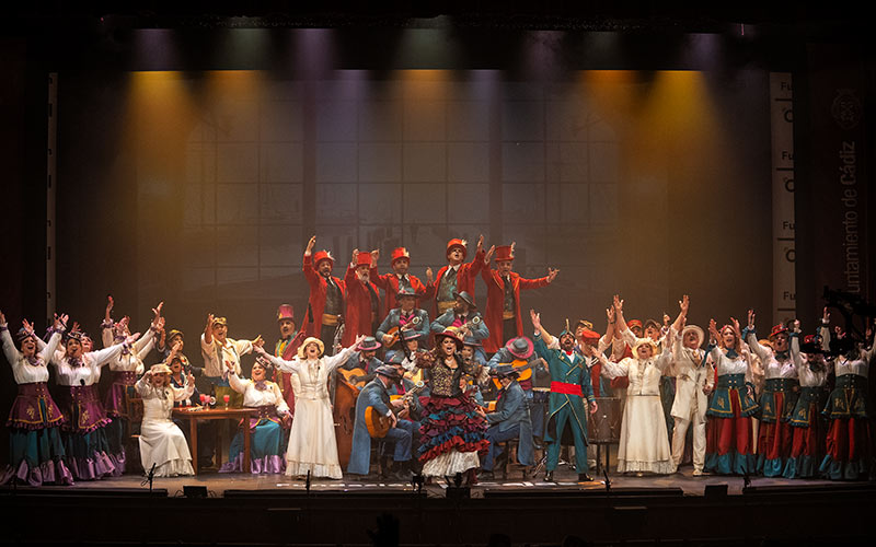 Va telón, pese a todo. “Vamos adelante sin mirar atrás… en un cante de ida y vuelta… y es por amor a mi tierra que se abren las puertas de par en par…”. Con la mente en las Américas y en un pasado ya pasado se presenta, con neblina ambiental, ‘Café Puerto América’, el coro de Paco Mora, celebrando sus bodas de plata, quien además pone la música a letra de Ramón Manuel Ruíz Lorenzo. Un tango dando visibilidad a la importancia de la salud metal…, “hay un fantasma en mi casa… me está dominando, me ata de pies y manos y me cuesta respirar, pero aparento que no pasa nada… que son muchas las mentes, las que lo tienen dentro, en un mundo cobarde donde la ayuda es sólo silencio”. “A veces no hay que confiar en lo que diga un adulto”, subraya la segunda letra reglamentaria condenando a los puercos “sin conciencia ni pudor” que abusan de niños…, “si tú encuentras el placer, reventando su niñez… te encerraba en un cuarto a solas con los padres, de todos los chiquillos que tu abusaste, como un cobarde”. Coro-drama. A los cuplés. Navidades prematuras, y ¿el niño con pelos en los huevos? Juan no lo pilla. Y su vecina Carmeluchi, mu novelera, cuando venga el tsunami ahí estará sentando “su coño pa ajogarse la primera”. Que rima con molondro, ejem. “Ponte una copita… que quiero olvidarme de los problemas y pasarlo bien, que ya los políticos nos darán porculo otra vez”. El popu, con ratos sí y otros no tanto, cuela alguna cuarteta indignada ante la turistificación, las casas que ya no huelen a puchero, y una Tacita que “se ha quedado para a anunciarse en el Wallapop”; y palito al Bruno, el alcalde, “no se mete en ná, no lucha ná”. “Rompe las cadenas de quien usa el poder a su antojo y manera… levántate y marca tu compás, que nadie te dirija y robe tu libertad… brinda con nosotrooooos”. Si convían, po chin chín. DIARIO Bahía de Cádiz