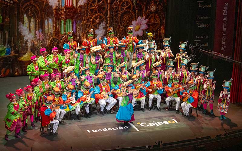 Arriba telón. Abre su jornada laboral esta fábrica del veneno del carnavá. Ficha a la entrada. Se presenta el coro de Huelva ‘Dame veneno’. Rafael Adamuz firma la letra y la música tiene detrás a Manuel Alvarado y a Antonio Rodríguez. Una industria con cuatro patas: el tipo, la música, las letras y las musas. El de recursos humanos tiene que estar reliao. Un tango sin miedo al martes trece y demás supersticiones, “no entiendo de mala suerte, yo tan sólo digo de frente, bendita suerte de estar aquí”. Ajá. El siguiente se acuerda de los sordos carnavaleros, reclamando intérpretes de signos en el escenario, que también tienen derecho a zamparse las perlitas de las preliminares. Con parte de la interpretación en lengua de signos, para que sintamos lo que sienten ellos. Empatía, Juan. Exceso de pellejo en un cuplé; y soñando con el Luis Rivero, en el otro. Vaya. “Traigo el veneno, que saco al llegar febrero, como un sorbito, que esta es la esencia del carnaval”. Explotación infantil y el rato del bocadillo no faltan en ese popurrí que se edifica, sorpresa, a partir de esos cuatro departamentos de esta cadena de montaje febreril. Y la mejor musa es ser “tú mismoooo”. Con promoción del veneno, en el chipúm. Agradable monotonía. DIARIO Bahía de Cádiz