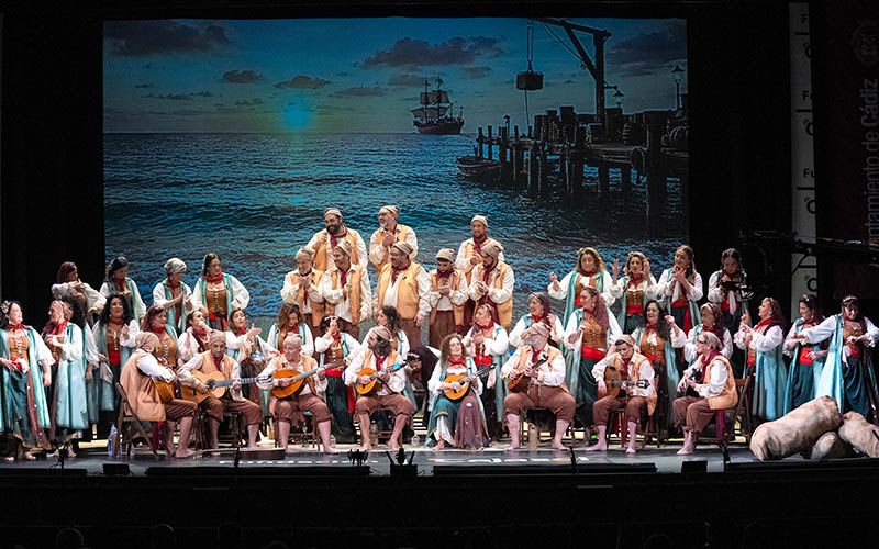 Va telón. Vaaamos con otro tipo salaíto, pero “canalla”. “De la mar, de la mar, de la maaaaar… siempre mirando a la mar, mi corazón es la mar… yo soy la buena y la mala, la marineraaaaa”. Baja la marea con ‘La marinera’, coro gaditano, descalzo, de cuya autoría se responsabilizan Antonio Manuel Grimaldi, Miguel Ángel Gómez y José Juan Pastrana, con Chari Quintero en la dirección. Con nostalgia de la Viña del ayer salpica el primer tango…, “ni barrio, mi barrio, mi barrio… y veo cómo ha cambiao, y me dan ganitas de llorar… nos la están quitando la identidad, cuatro negocios vendiendo un barrio…”. Y a tragar. La otra letrilla chorrea rabia por la negligente gestión de los cribados de cáncer de mama por parte de la Junta del Juarmamoreno, aunque con relíos de partida…, “pa nosotras sigue la dictadura, seguimos luchando contra la censura, no encuentro la cura… y lo que no se cura es el miedo a morir… nos está matando… a ver cómo les pides a esas mujeres que a tú partido sigan votando”. La pringue pegajosa de El Manteca enfosca uno de los cupleses, de secano. “Que mi amor es caprichoso como las olas del mar… que a ratos se viene, a ratos se va”. Y la marejadilla voluntariosa insiste en un popurrí ajeno al principio de Arquímedes…, “si quieres saber de mí, pregunten por la Carmela, si dicen no conocerme, tú dile la Marinera, pegaíta al noray, aún sigue buscando el norte… hasta entonces, salve Cádiz, la marineraaaa”. Juan, ¡mójate! ¿Más? Si tiene dos pies soperos. DIARIO Bahía de Cádiz