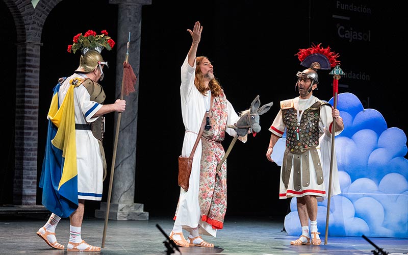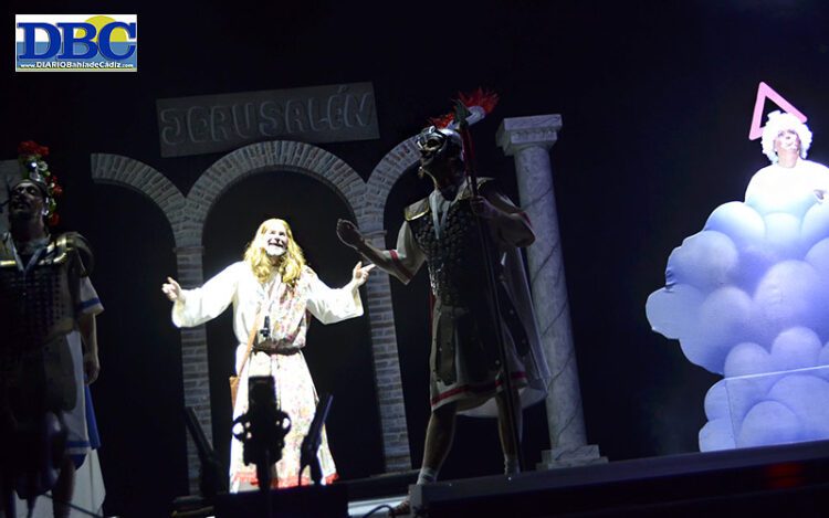Momento cuarteto sorpresa. Sin autorizarse los datos de la autoría de ‘Crónica de una muerte más que anunciada’. Ojo. Parad las rotativas. ¡¡Un cuarteto rimado!!! Están locos estos romanos. Nos vamos a Jerusalén, con un par de centuriones de guardia. Y ahí aparece Jesús, sin frenillo, a borriquín… “hijo de María y José… lo de José es por poner algo… ¿tú cuántos les echas al chavá?, no llega a los treinta y cuatro”. Con la Koki surgiendo en los momentos más místicos de la parodia, como dios entre las nubes. Parodiando la vida y obra de este personaje histórico, mientras el Falla se mantiene expectante. ¿Son buenos o lo disimulan? “Cádiz no vale ná comparao con Gades… no había tantas tonterías, porque por suerte no había nacío Bruno García”. De primer cuplé. Mucho mejor el segundo, buscando un nuevo presidente de paja para Venezuela, sin gracia, sin carisma… y ahí ven a “Bruno García”, jajaja. “Hay cosas que son igual, en la Semana Santa y en el carnaval, la peshá de tontos que uno tiene que aguantar”. Sigue el asunto bíblico-semanasantero en el tema libre, donde este cuarteto de nueva creación y a la vez con tablas en escena termina de explotar y de enganchar, va gustándose, regustándose y repartiendo hostias, carga, guasa, crítica local, y más allá. Sin histrionismo ni imposturas ni hacer la iguana. Con el Jesús expulsando a los mercaderes del templo, e invitando a la ¿última? cena, también al Pedro y al Judas…, “le echa limón al cazón, ¿no es pa crucificarle?… y ¿de marisco qué va a haber?, marisco de SanLucas”. “La Iglesia siempre paga el IBI como todo el mundo, nooooo, noo, no”, jejeje. Po resulta que la sorpresa sorpresa ha salido cara: cuartetón. DIARIO Bahía de Cádiz