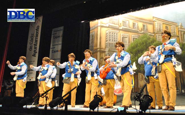 Turno de la agrupación cabezona de la función, unga unga… “El Congo está fatal… pero EspÁña está peor, fíjate que yo tengo apadrinao a un gashó que es de Albacete… le le lelele le lo lo lolololó… llegamos del Congo yaaaaaa”. La chirigota del Vera, José Antonio Vera Luque, ‘No tenemo el Congo pa farolillos’, persiguiendo tras los marcianos la enésima final y otro primero. De re-presentación el primer pasodoble, con inciso a esas voces que aconsejaban antaño a este grupo pasarse a la comparsa para triunfar… “naciste con el siglo y el nuevo milenio, y en tus primeros pasos ya pusiste el sello del pasodoble serio y el cuplé canalla… ante ustedes les presento, mi nueva chirigota”. Defensa de la constancia y fe en uno mismo. Y más humor para el segundo, con variación en la música y sin dejar las puyitas polítiqueras… “soy caníbal, me alimento de carne humana, yo me como al Pacoli de dos bocaos…”. Y si se zampan al M.Rajoy, dales omeprazol, para no repetirlo. Y este que me queda aquí, se lo mete a tu hermana en el Congo. El tontito de las banderitas tiene repe el pendón del Congo. El señor mongolo (de Mongolia) colecciona farolillos. Los veinticinco años de las Olimpiadas de Barcelona, y su Cobi… “es el Junqueras que con los años se ha estropeao”, en un cuplé. Y el Chiquetete de rey mago, en el otro… “la tradición la cumplió el muchacho, por navidad siempre hemos visto a un rey hablando borracho”. Si dentro de nueve meses, tu parienta tiene un niño morenito, a mí no me meta en ná, que esto es pintura, ¡ehhh! Y al loco popurrí, musicalmente coherente, con su cuarteta del negro del wasap, es de la tribu, el pocapicha le llaman; la del SAS, “Servicio Andaluz, nooooo, Africano de Salud”; o su bodorrio y cante por carnavales ajín… “que en el Congo estoy bien, pero aquí estoy mejón… yo tengo ganas de carnaval… le le lelele le lo lo lolololó, nos vamos pal Congo yaaaaa”. Cerrando el círculo. El Vera, a lo suyo.