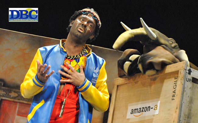 Intercambio estudiantil chirigotero… “estoy mejor que en brazos viviendo aquí en Cádiz…”. Doce africanos en un piso de la calle Pasquín, y el elefante, ¡qué bote el elefante, qué bote el elefante! El Falla es soberano. Bota, dentro de la caja del amazon-a. Debe ser complejo cantar con un recuerdo de Arcos de labio inferior. Quejoso el primer pasodoble, con los nuevos eruditos de carnavá, aro aro, que al parecer están todos en el twitti… “ya no es una fiesta popular, es una fiesta universal… al final va a resultar que yo jarto de ensayar, no pinto ná, no pinto ná”. Cuarto y mitad de razón. Proanimalista entra el segundo reglamentario, que se tuerce buscando uno de los temas manidos de este concurso… “esa manada en San Fermín, no merece para mí llamarse así”. Humor negro en un cupletillo, contentos por la presencia de tantos grupos tiznaos, también el del Vera y el del Bizcocho; y la Mirian Peralta, de cameo con el equinodermo, en el otro. Han ligao. Que nosotros somos más, de la selva del Amazonas. Pero… ¿no eran africanos?, se cuestiona el tontito de las banderitas, que colorea muchos mapamundis. “Carliiii, sal de la jaula por mí”. Integrados en la idiosincrasia gadita en un popurrí simpaticón con pánico a la “cola de la circuncisión”, que rima en asonante, y remate potito… “aquí la inmigración es fácil, la gente sabe lo que es ser pobre… nadie te va a acoger de esta manera”. El señor mongolo (de Mongolia) también tiene trompa. Lo dejamos ahí.