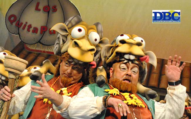 El duende de cuatro barrios señeros de Cádi Cádiz, en escena: la Viña, el Mentidero, el Pópulo y Santa María… “no puedes verme porque me oculto en las entrañas del gaditano, en las heridas que te provocan los que gobiernan, en los cohones de los trabajadores que cortan el puente, en la verdad que destruye tu mala suerte… soy tu raza, tu conciencia, tu locura, la esencia que no se enseña que no se aprende…”. Los de Nene Cheza son vecinos de los duendes coloraos de los Carapapas, ¿no? “Mi nación es Cái”, sentencia el primer pasodoble, dibujando al gaditano desde dentro, y no como se ve desde fuera… “el duende de nuestra tierra, además de a marea, incienso y romero, huele a lucha y a pelea y a la sangre del obrero… mírame bien la etiqueta, que no pone copla y fiesta, sólo pone gaditano…”. Y el abuelo babea por la nieta, por su princesa, en la segunda letrilla… “que el amor de mis amores, lleva sangre de mi sangre”. Onanismo cupletero. En el primero, “lo que más me flipa es descargarme peliculitas… bajas las pelis, pero suben otras cosas”. Me cashi en la mar, me cashi en la mar, me cashi en la mar. Esta esencia del gadita distribuida por cuatro rincones recorre ese popu tirititrantantero…. y “lo más grande de Cádi, siempre fueron los viñeros… levanta gaditano no te tragues tus miserias, la sangre de mis barrios es la savia de esta tierra, y el duende de Cái eres tú…”. ¿Yo?, no tú no, tontito de las banderitas. ¿Y yo?, tú tampoco, señor mongolo (de Mongolia).